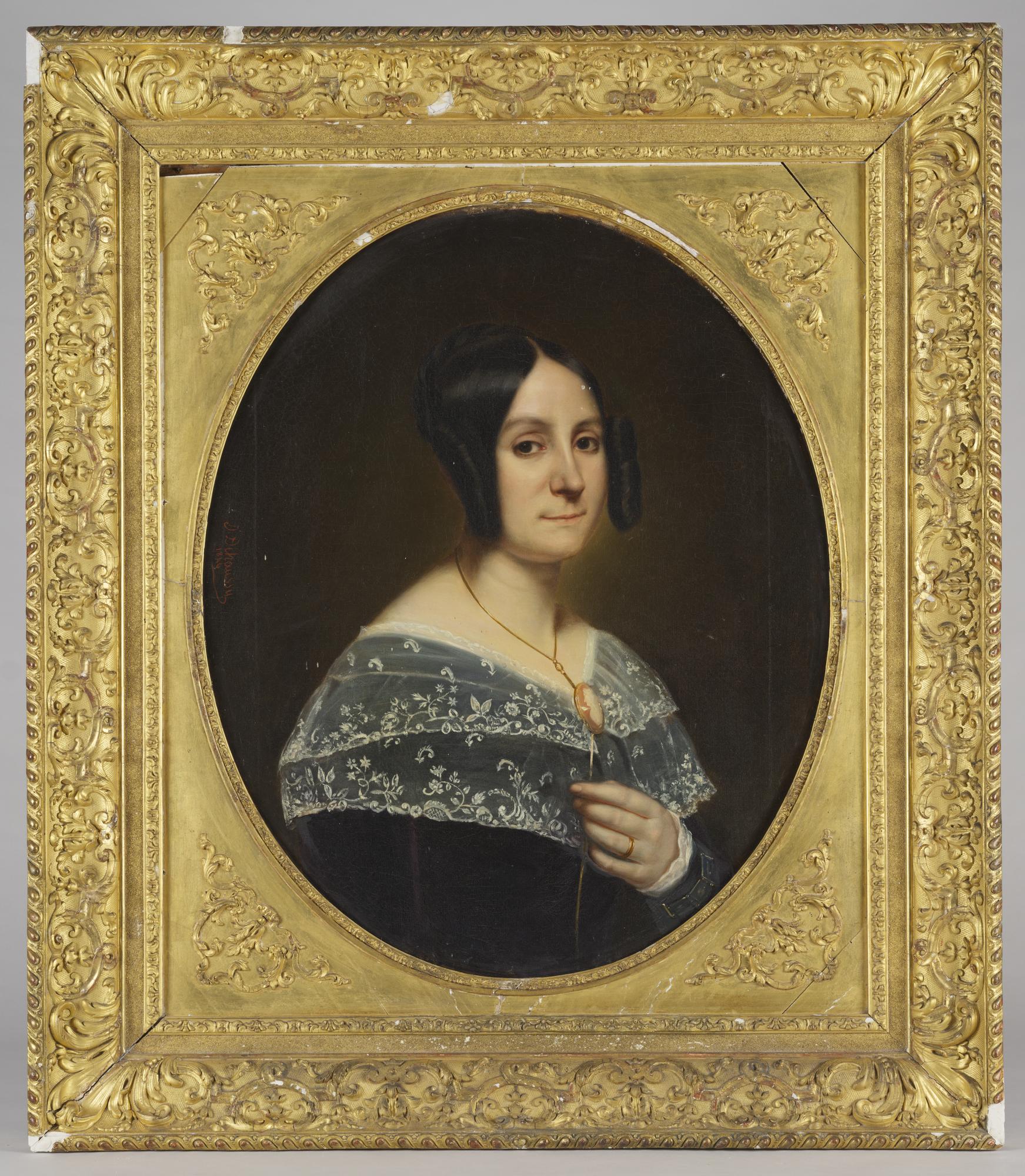 Ce portrait peint par Jean-Baptiste Jules Dehaussy (1812 – 1891) représente Marie Michelle Garreau. Née Marie Michelle Maillet, elle épouse le 10 septembre 1827 à Nantes l’urbaniste et architecte Jean-Pierre Garreau. Ils s’installent à partir de 1853 à Remouillé dont Jean-Pierre Garreau devient le maire jusqu’en 1865. Il y développe ses talents d’architecte en créant les « folies Garreau », notamment la chapelle Garreau, où le couple est inhumé.