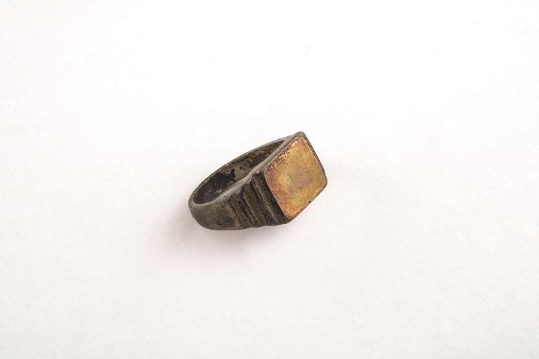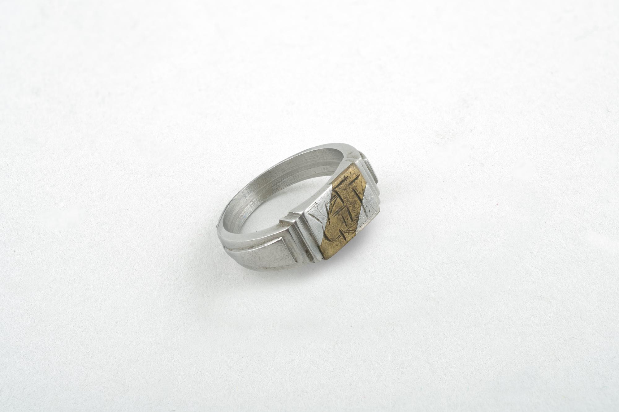 Il s’agit d’une bague confectionnée par René Rivet lors de sa déportation. René Rivet est arrêté par la police française pour fait de résistance, le 2 avril 1944, près de son domicile, à Nantes, dans le quartier des Batignolles. Incarcéré pour interrogatoire rue du roi Albert puis à la prison Lafayette, il est emmené le 21 avril à la Kommandantur, place Louis XVI, pour un nouvel interrogatoire, soumis à la torture.