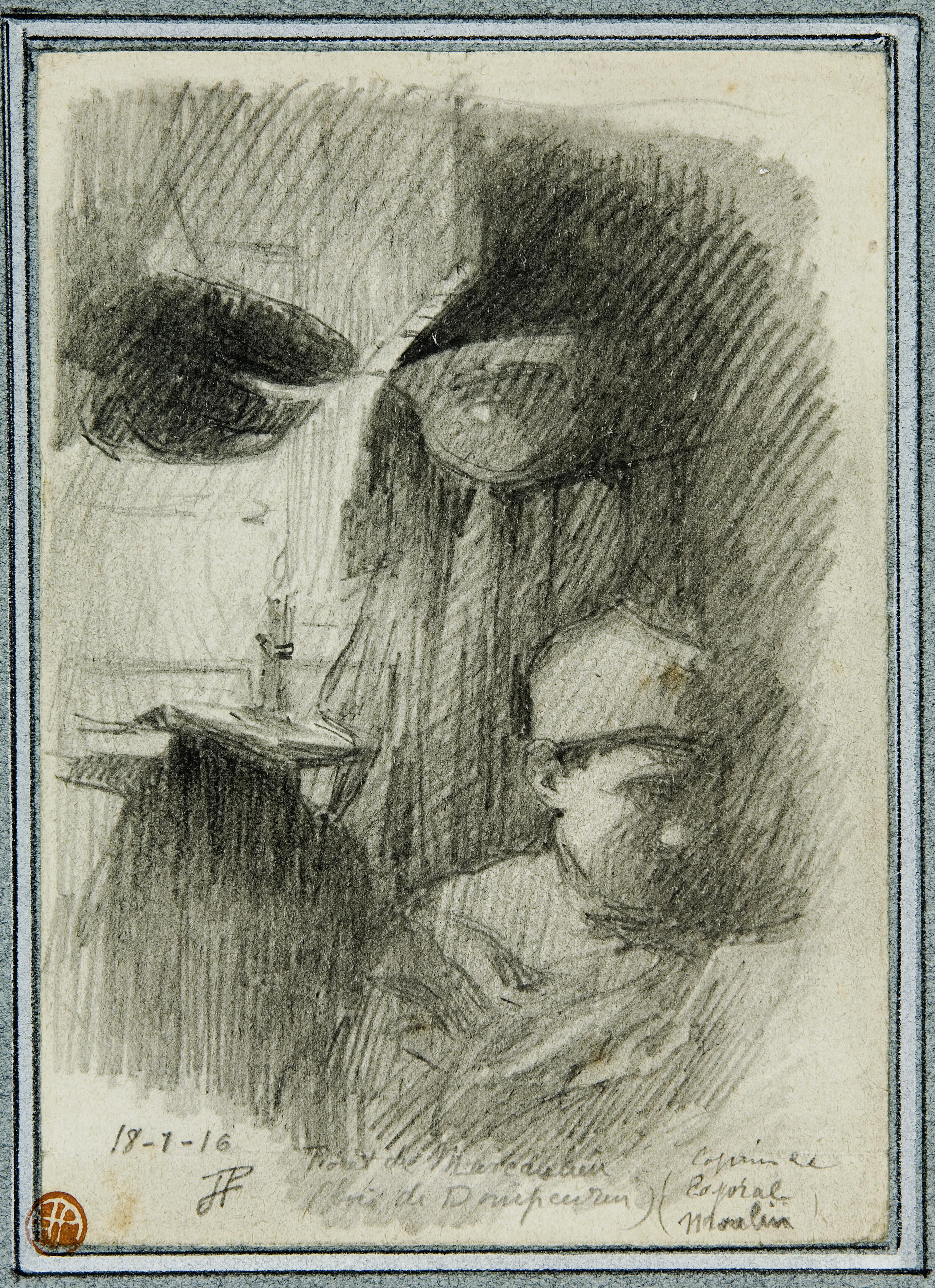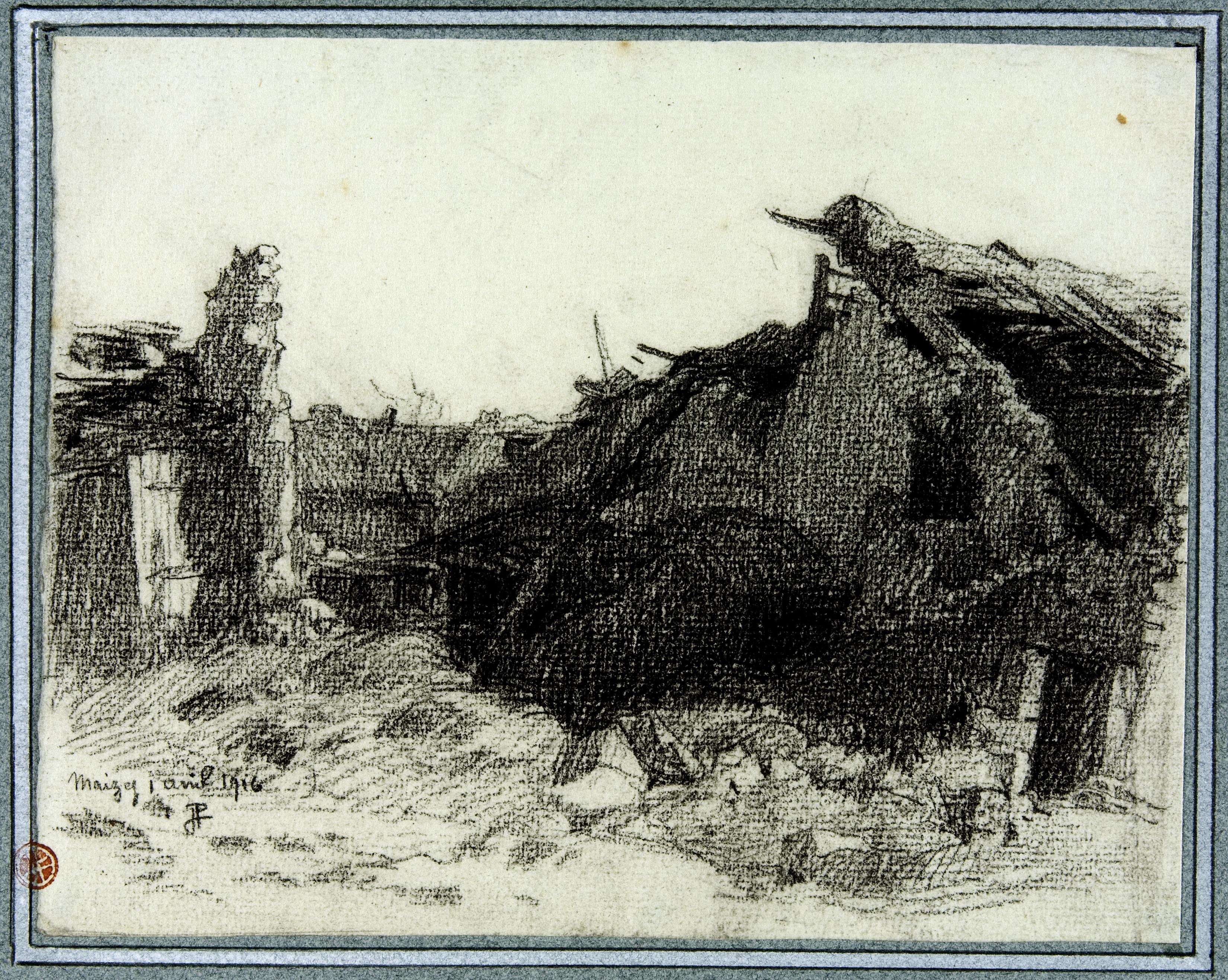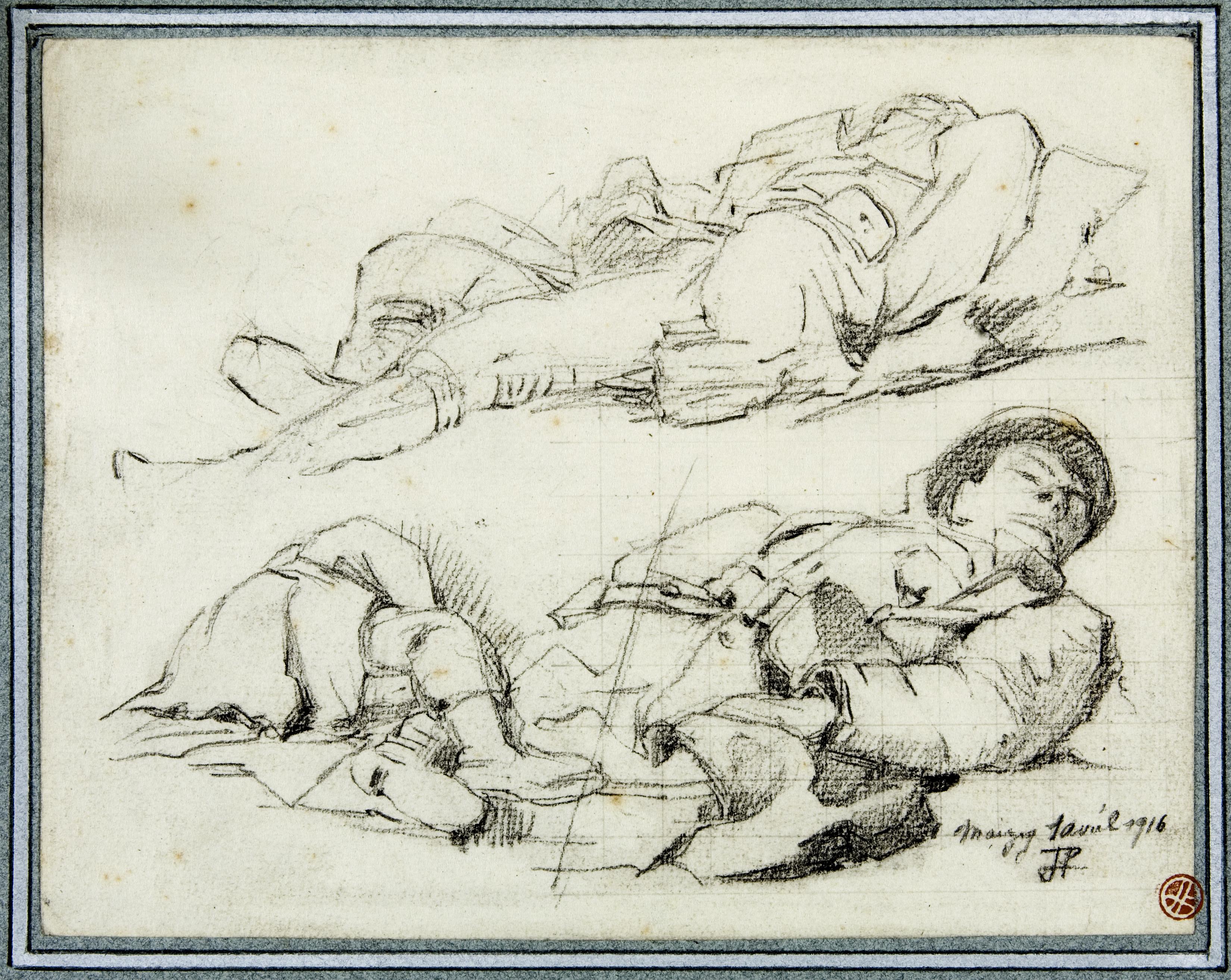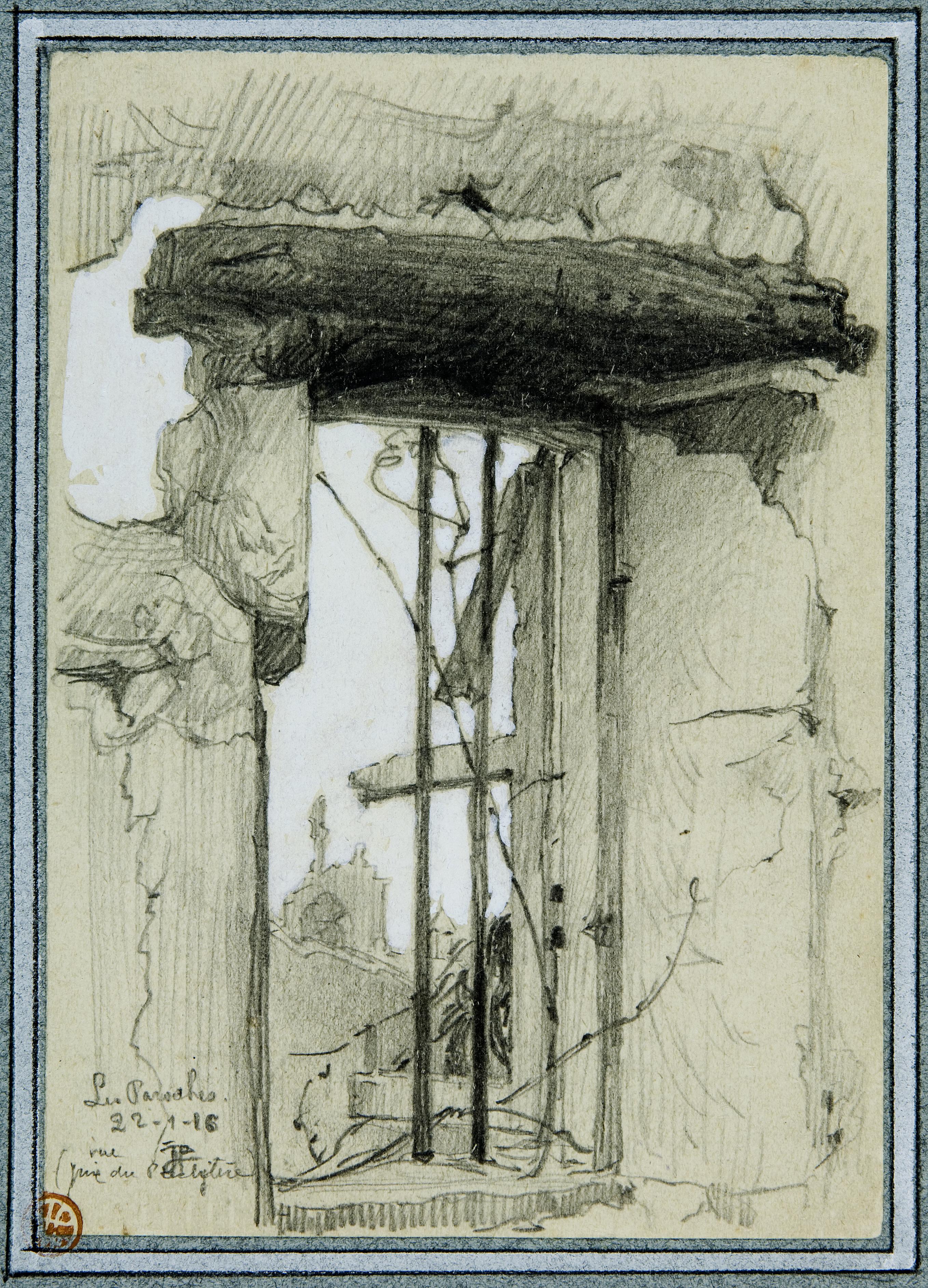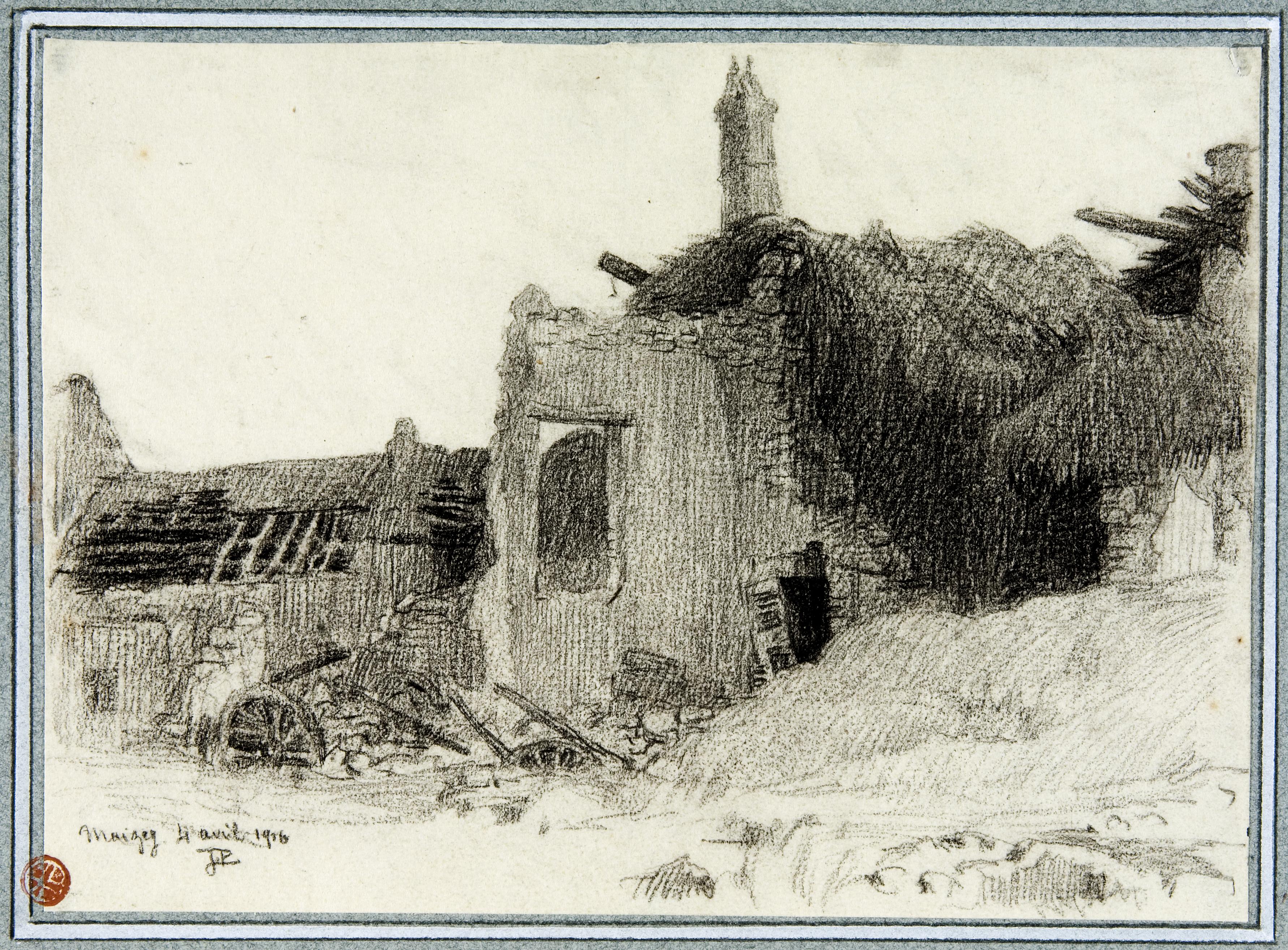 Âgé de 33 ans en 1914, l’artiste nantais Jules Ponceau, ancien élève de Louis Olivier Merson, Gervais et Clairin, récompensé quatre ans plus tôt au Salon des artistes français, pour son œuvre gravé, est incorporé au 106e régiment d’infanterie territoriale, régiment de réservistes. Il participe aux combats qui se déroulent dans la région de la Meuse, notamment dans le canton de Saint-Mihiel durant les deux premières années de la guerre. Blessé en 1916, il reste à l’hôpital plusieurs mois. Après la guerre, il réalise un album à partir des dessins et des croquis qu’il a faits sur le front, le dédiant à son fils, Yves, qu’il exhorte à lutter pour le maintien de la paix. Son œuvre montre toute l’horreur des combats.