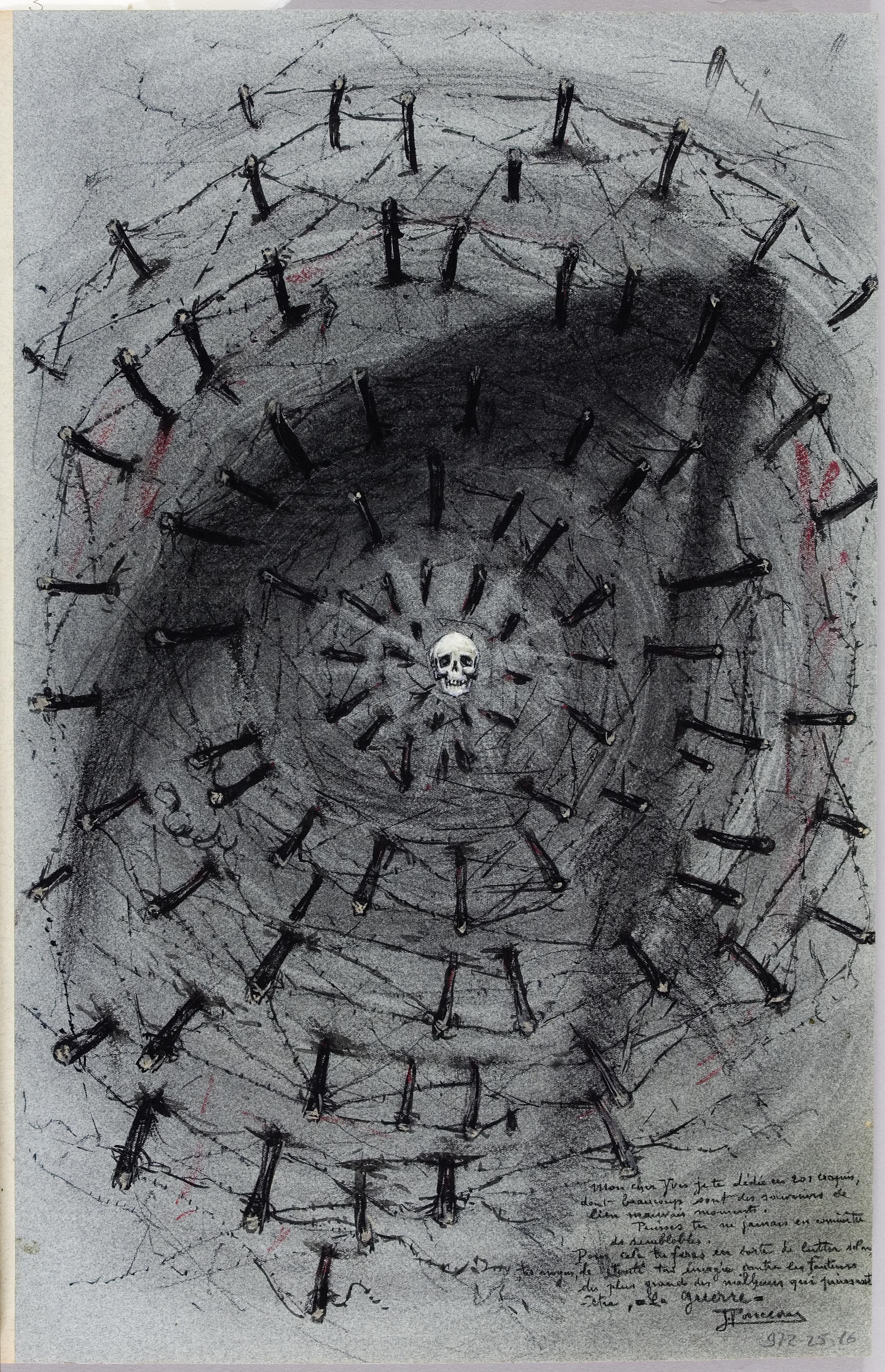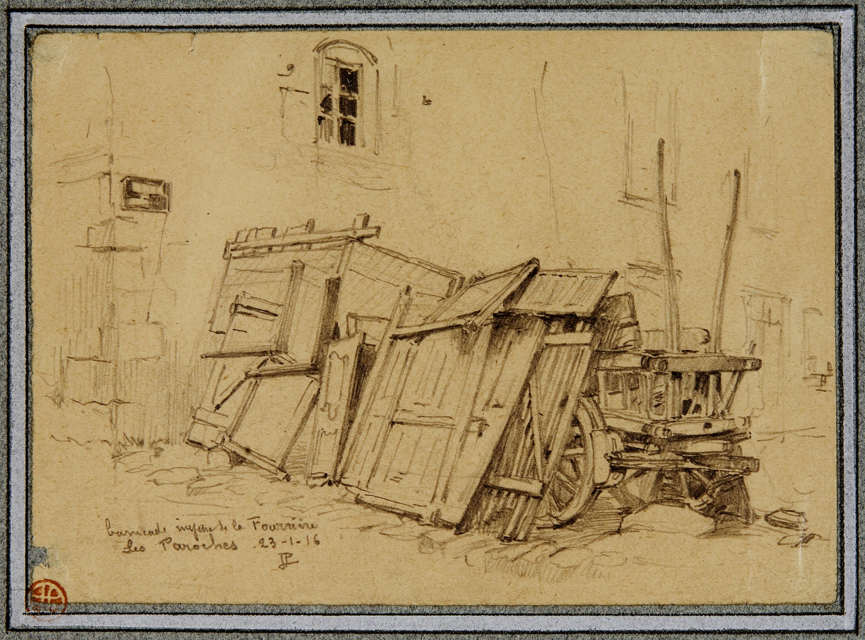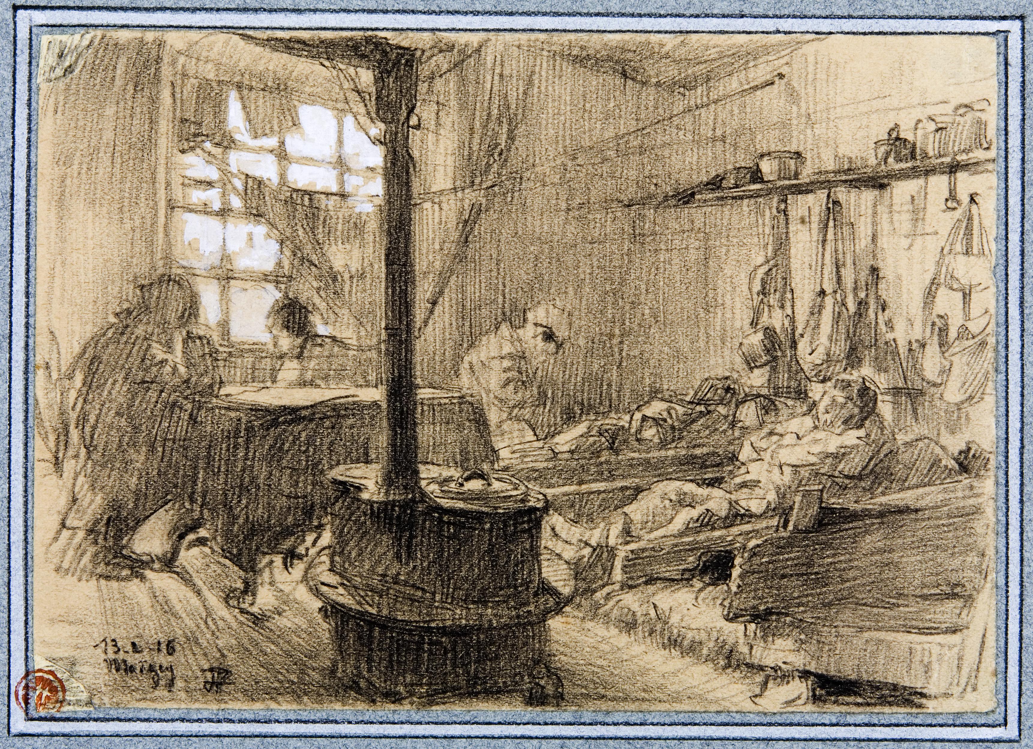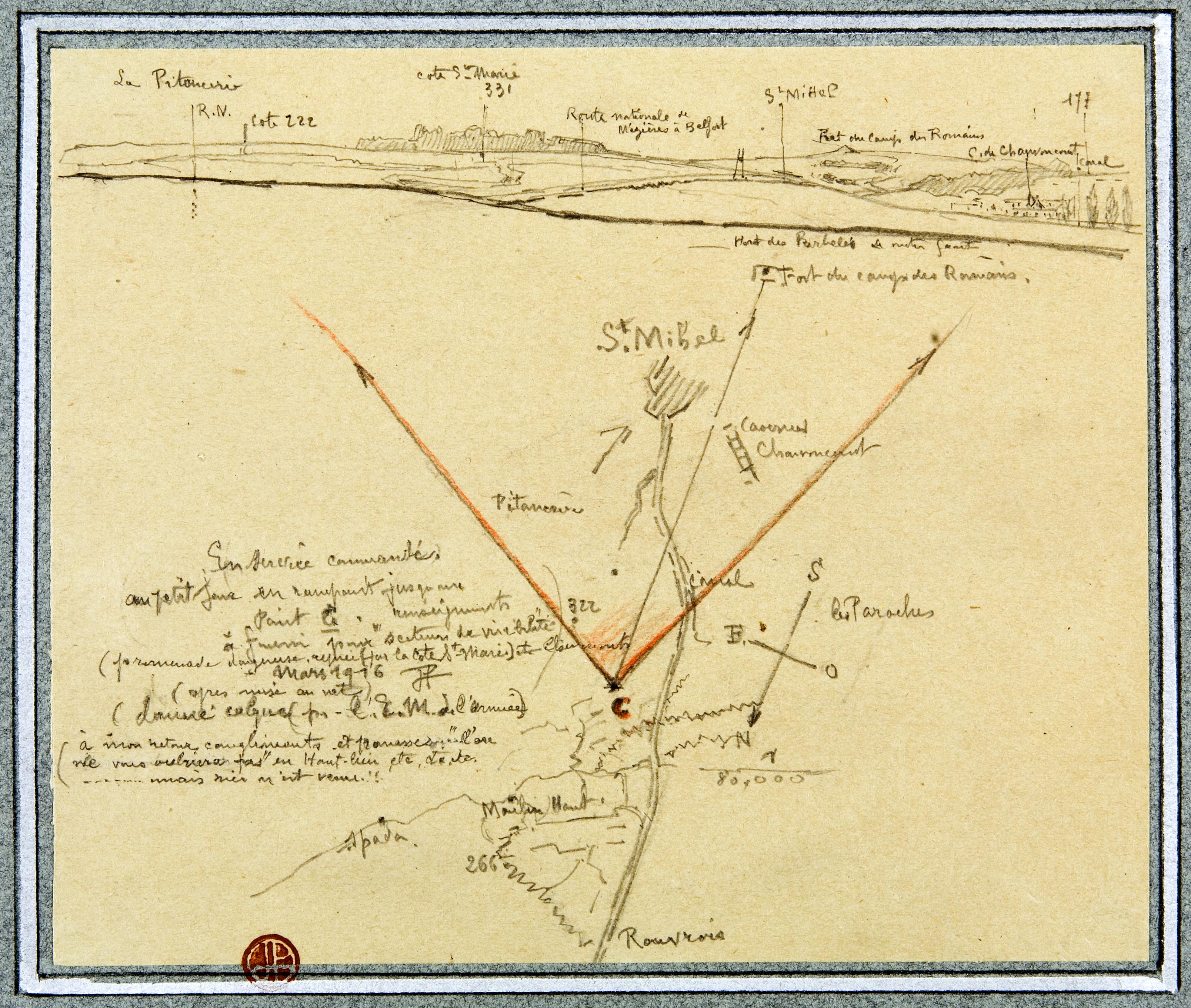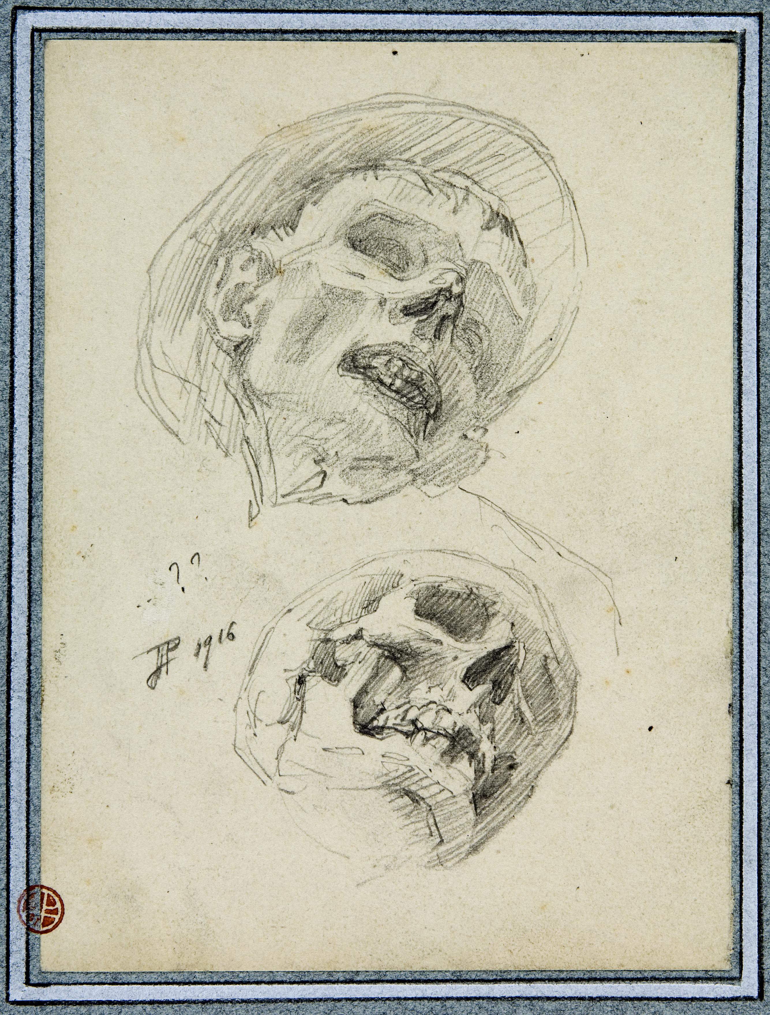 Âgé de 33 ans en 1914, l’artiste nantais Jules Ponceau, ancien élève de Louis Olivier Merson, Gervais et Clairin, récompensé quatre ans plus tôt au Salon des artistes français, pour son œuvre gravé, est incorporé au 106e régiment d’infanterie territoriale, régiment de réservistes. Il participe aux combats qui se déroulent dans la région de la Meuse, notamment dans le canton de Saint-Mihiel durant les deux premières années de la guerre. Blessé en 1916, il reste à l’hôpital plusieurs mois. Après la guerre, il réalise un album à partir des dessins et des croquis qu’il a faits sur le front, le dédiant à son fils, Yves, qu’il exhorte à lutter pour le maintien de la paix. Son œuvre montre toute l’horreur des combats.