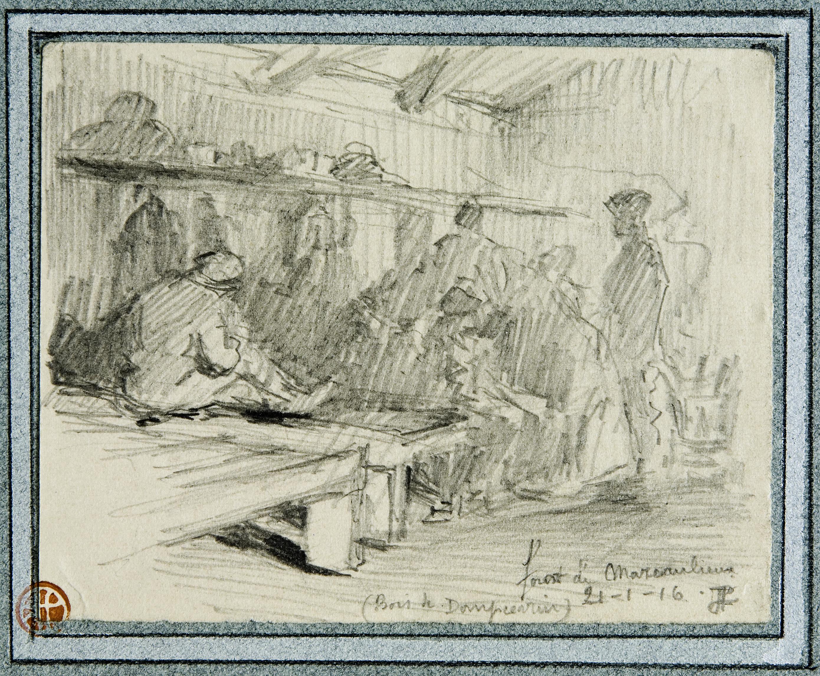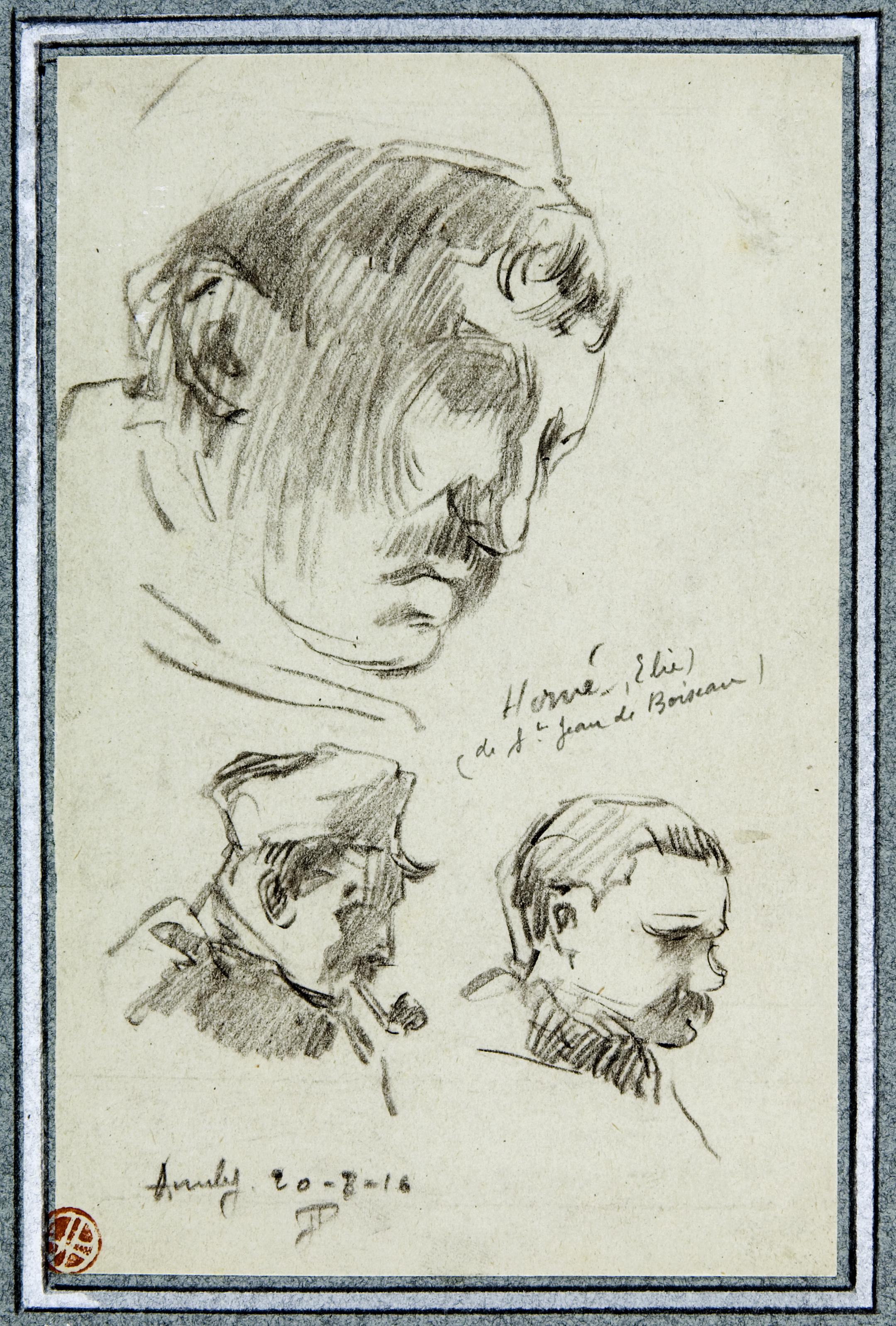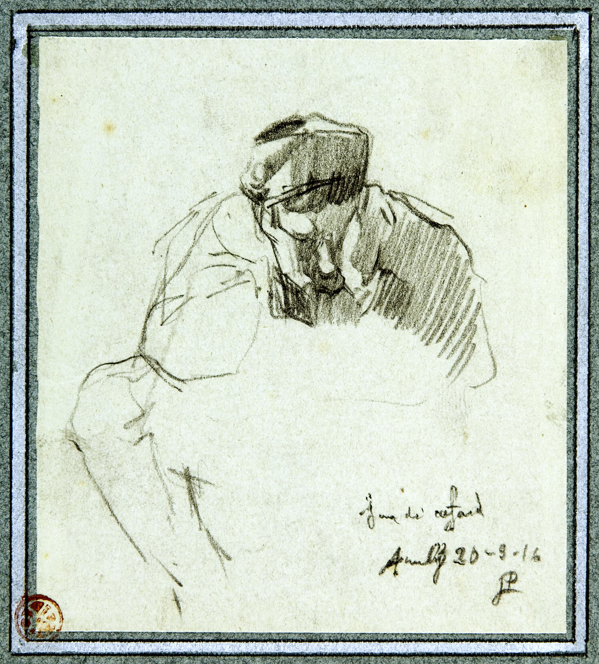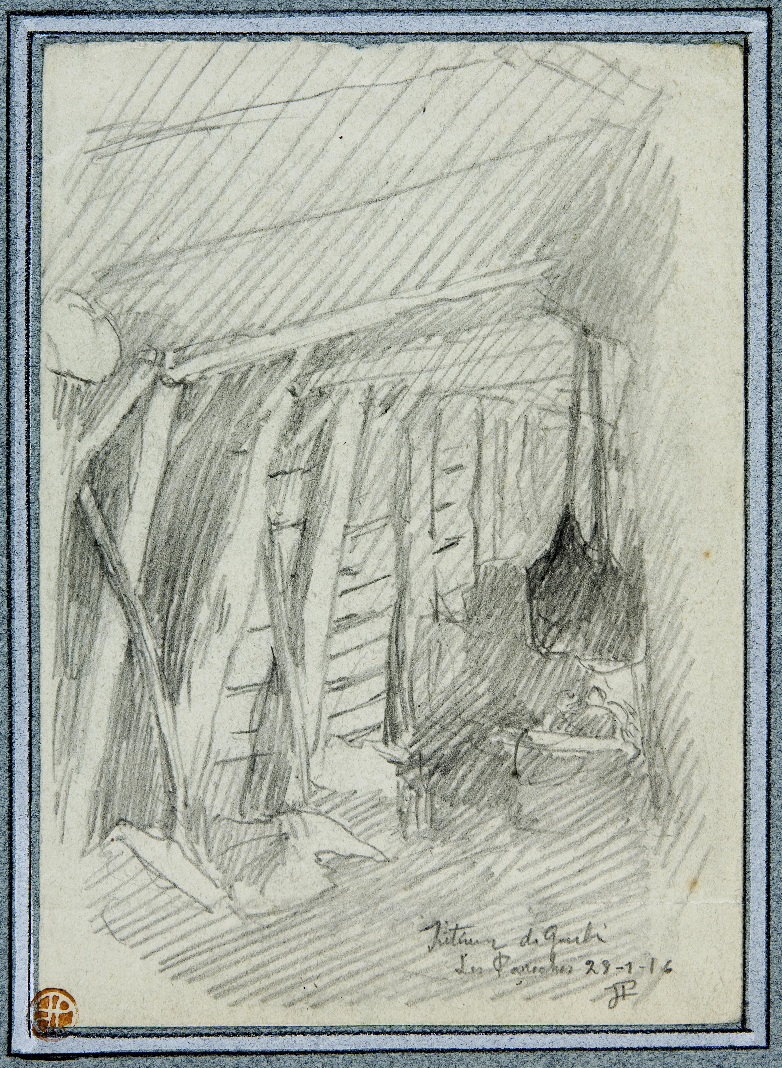 Il s’agit d’un album composé de 202 croquis de guerre réalisés de 1915 à 1919. Les 42 dessins scannés sont tous titrés, datés et signés par l’auteur, Jules François Charles Ponceau.