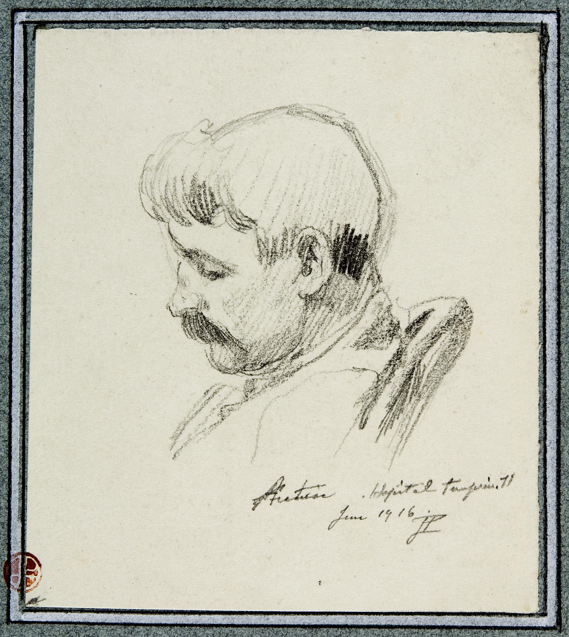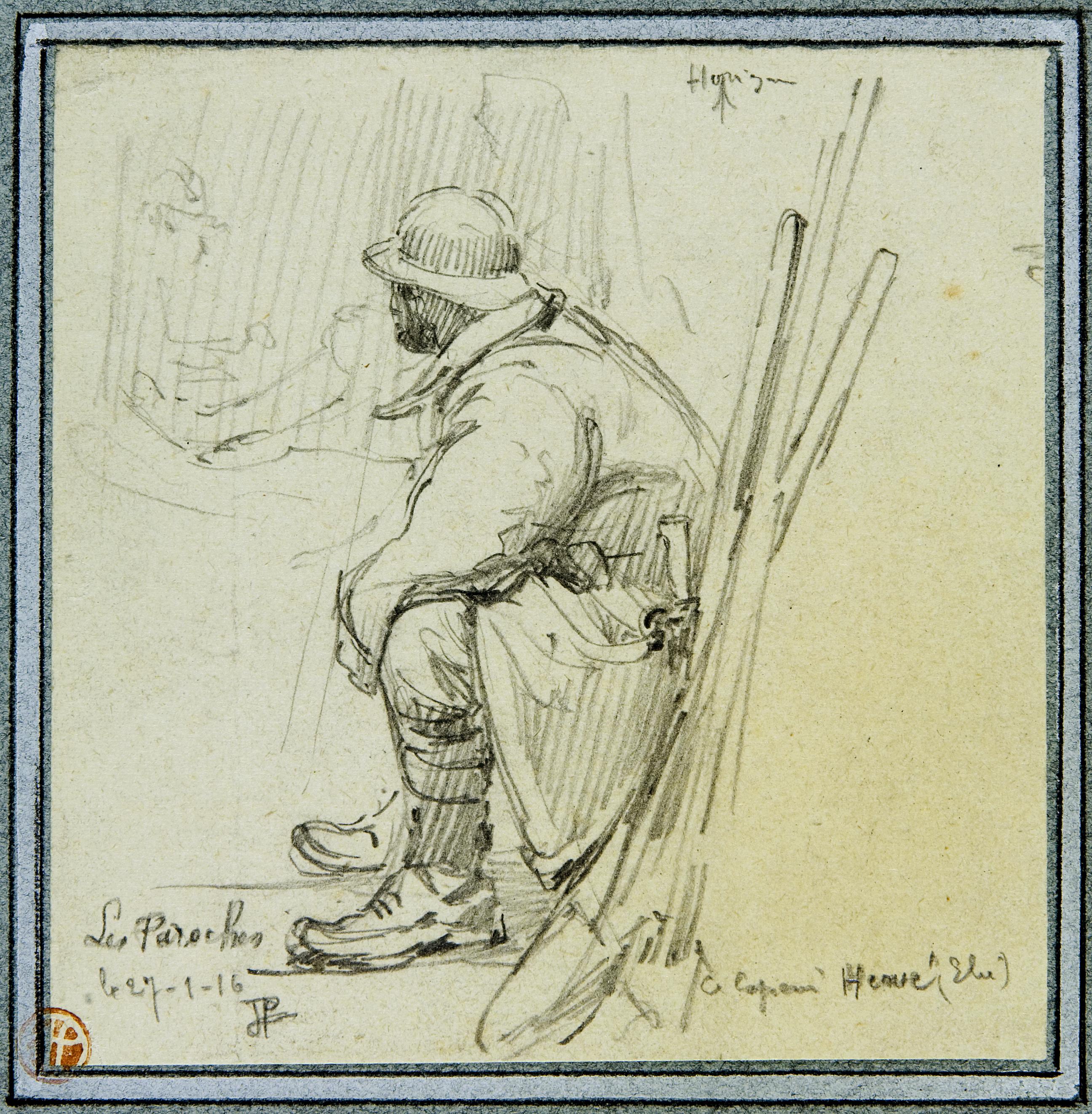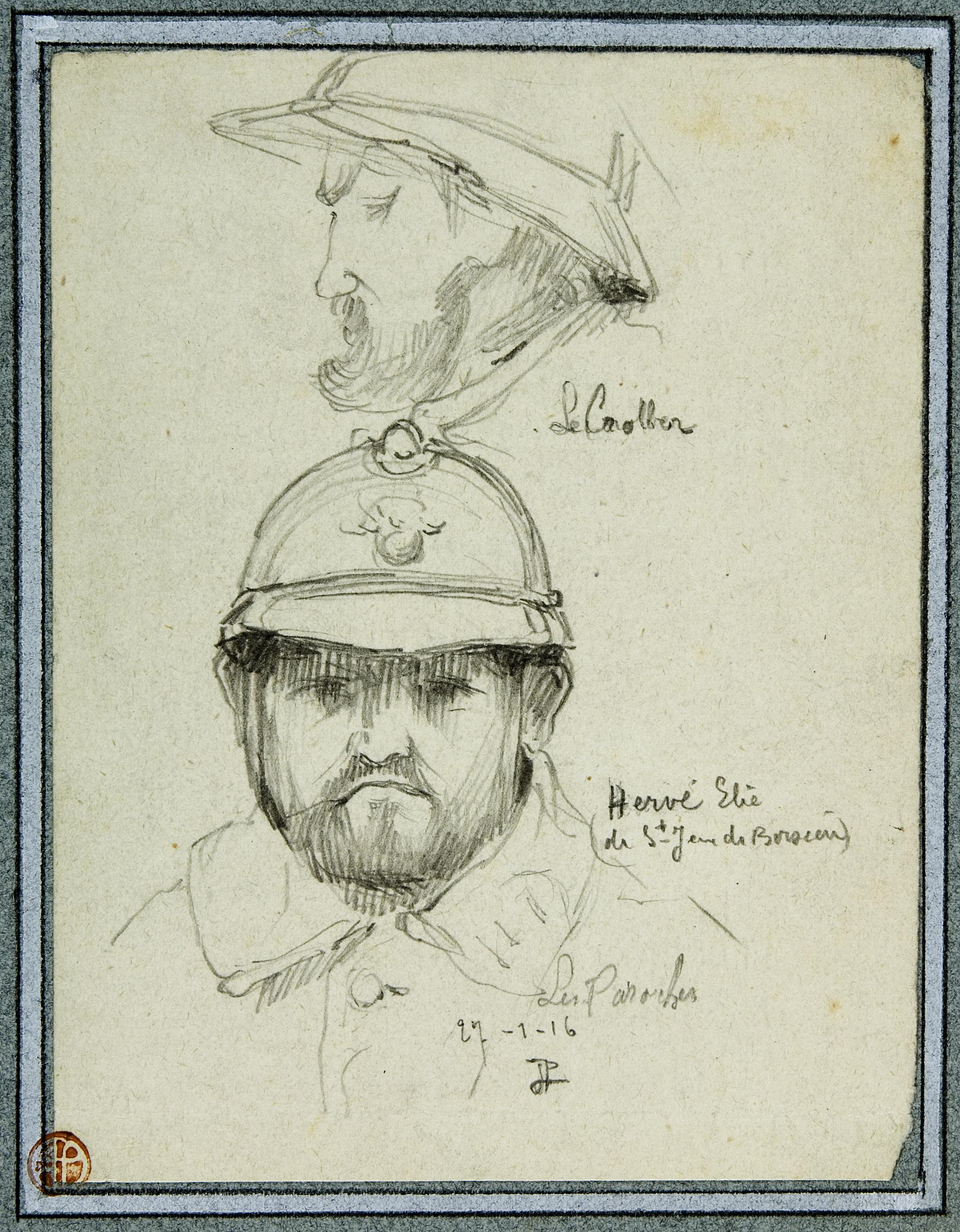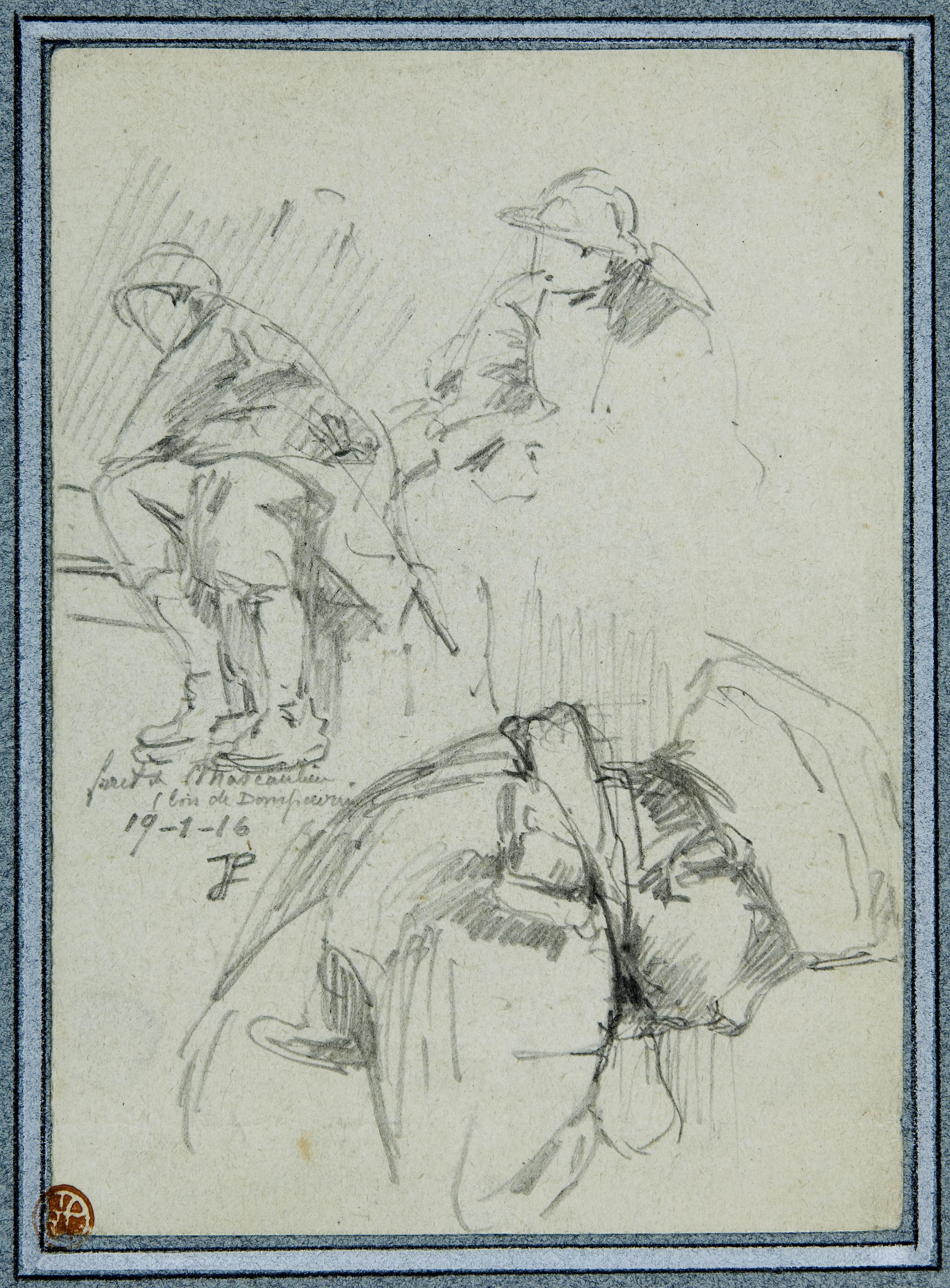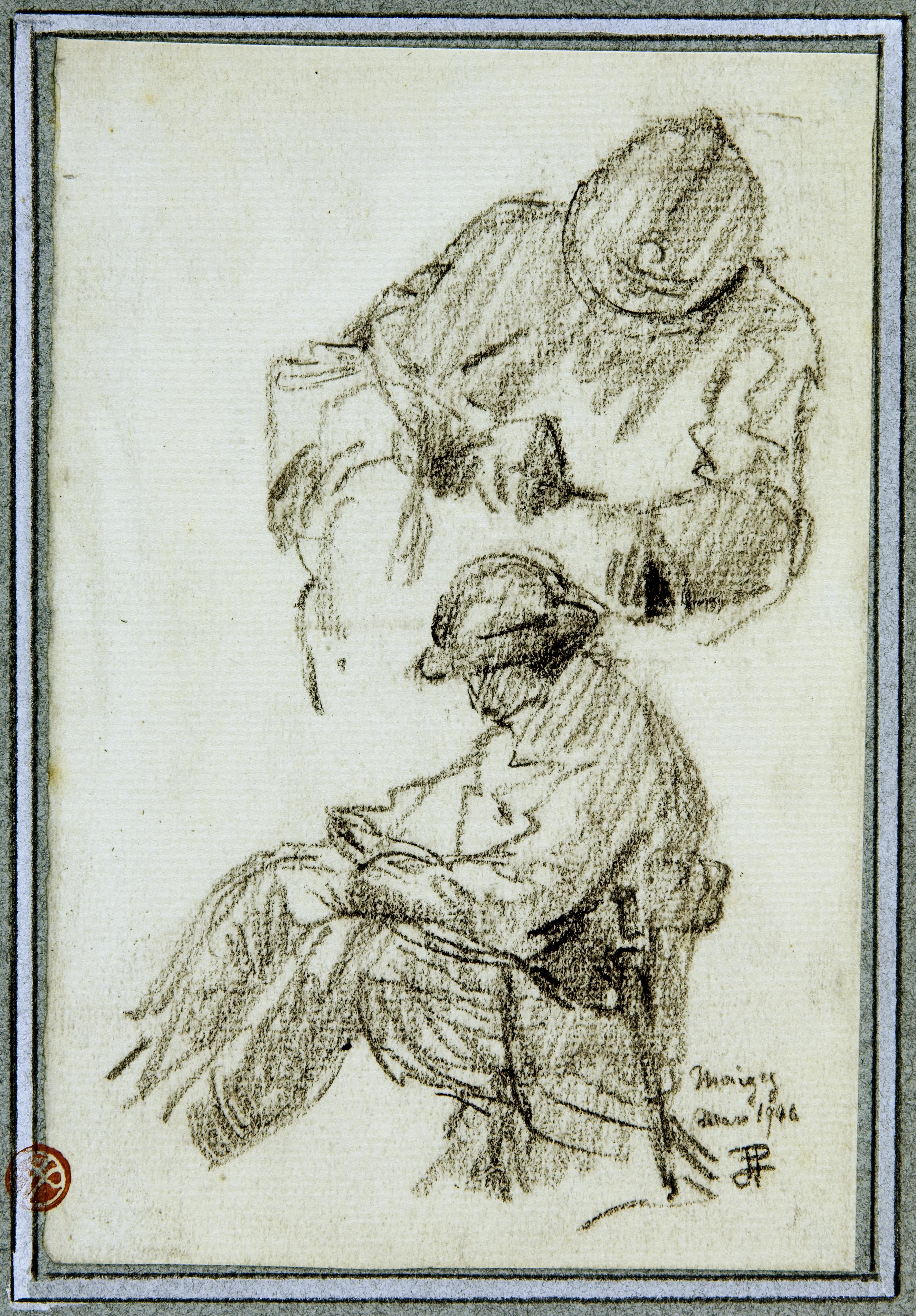 Il s’agit d’un album composé de 202 croquis de guerre réalisés de 1915 à 1919. Les 42 dessins scannés sont tous titrés, datés et signés par l’auteur, Jules François Charles Ponceau.
