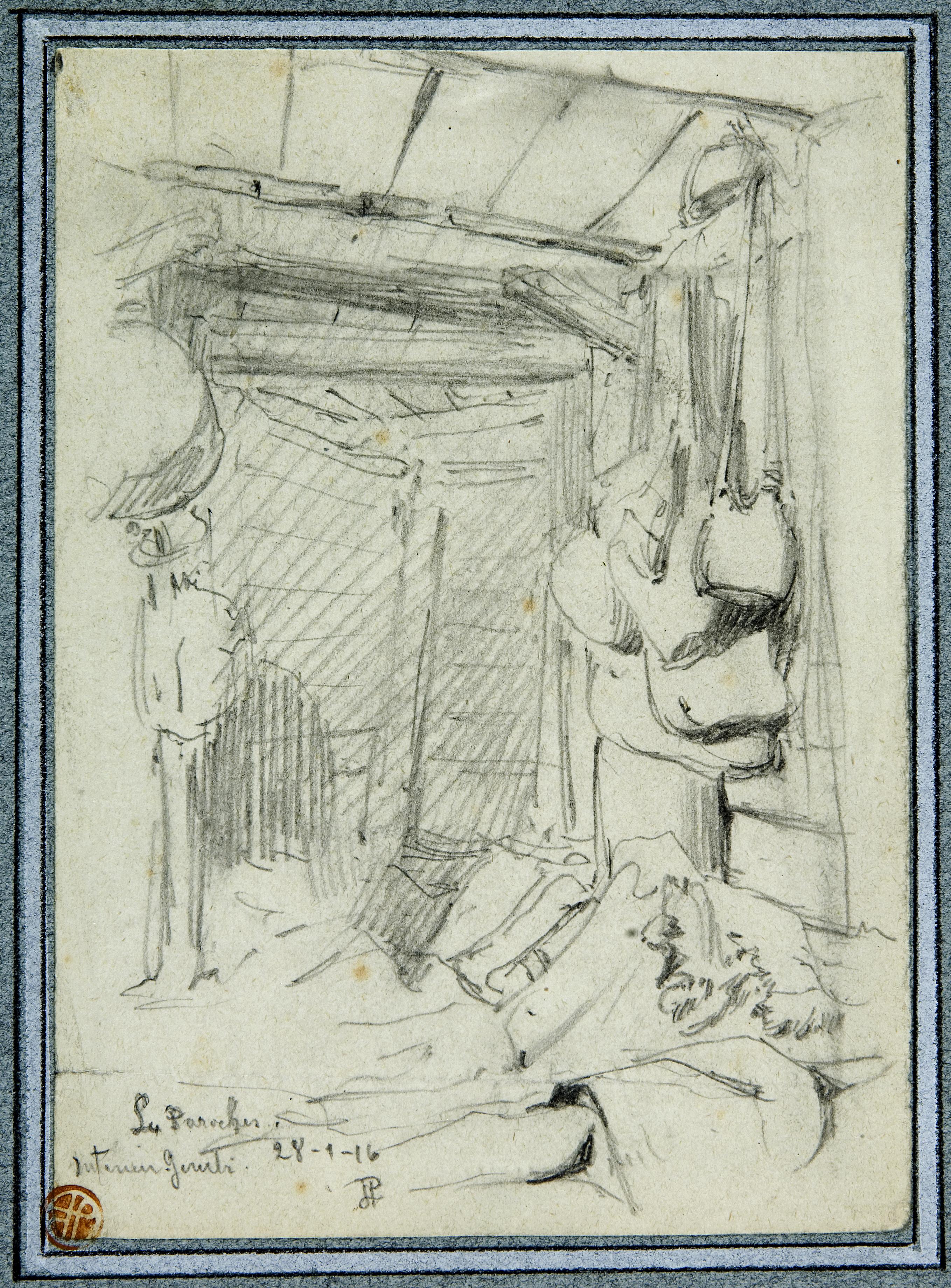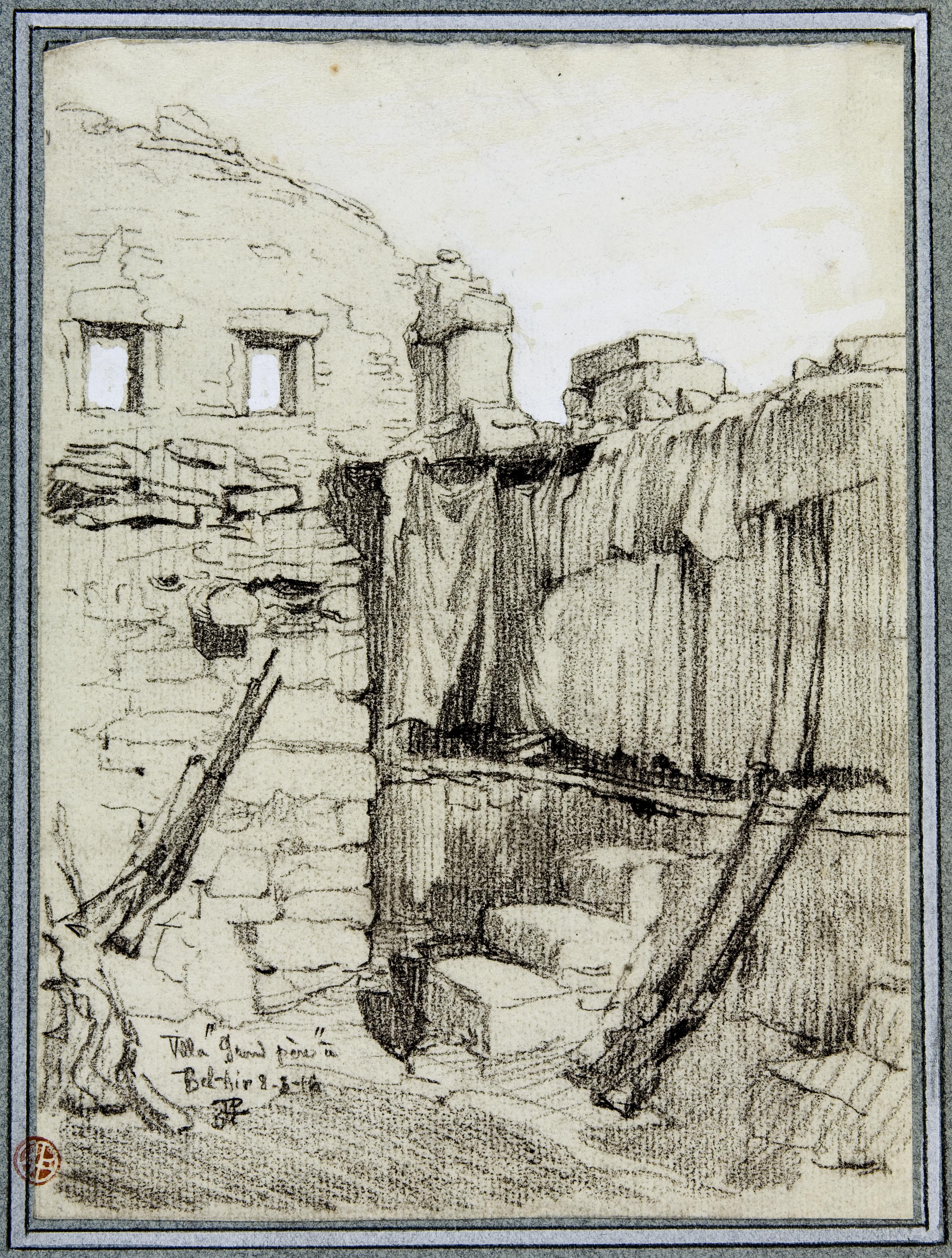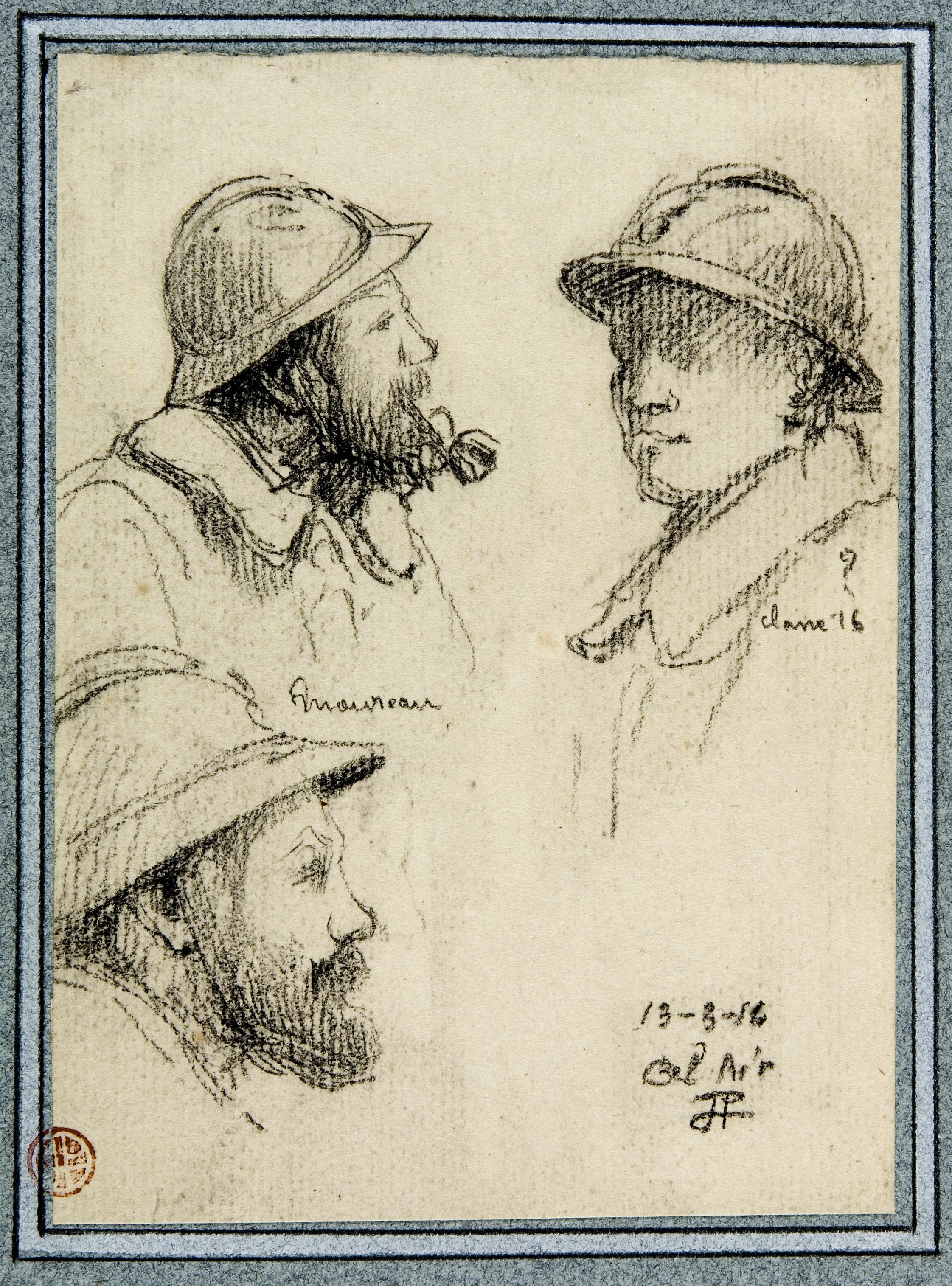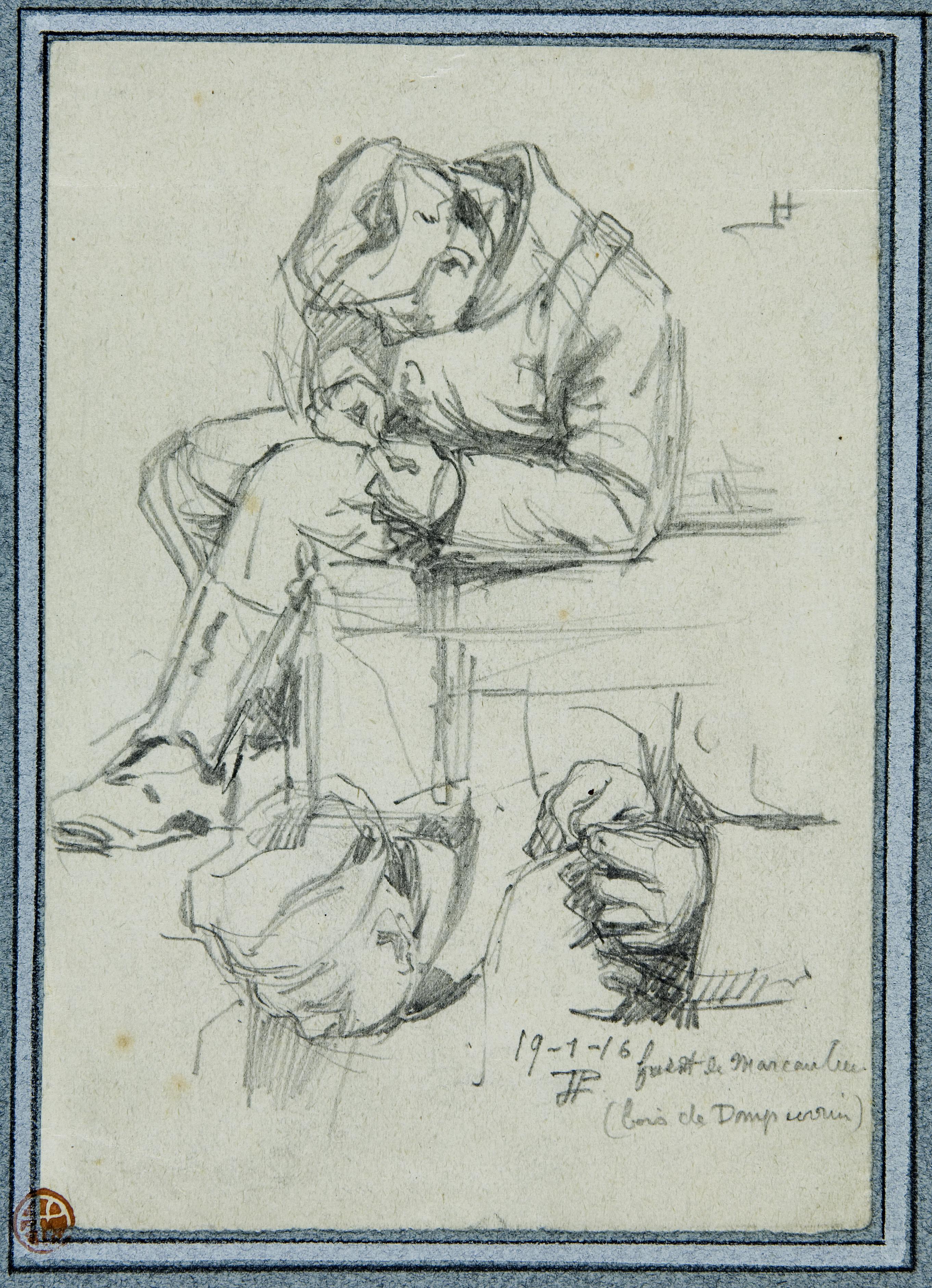Il s’agit d’un album composé de 202 croquis de guerre réalisés de 1915 à 1919. Les 42 dessins scannés sont tous titrés, datés et signés par l’auteur, Jules François Charles Ponceau.