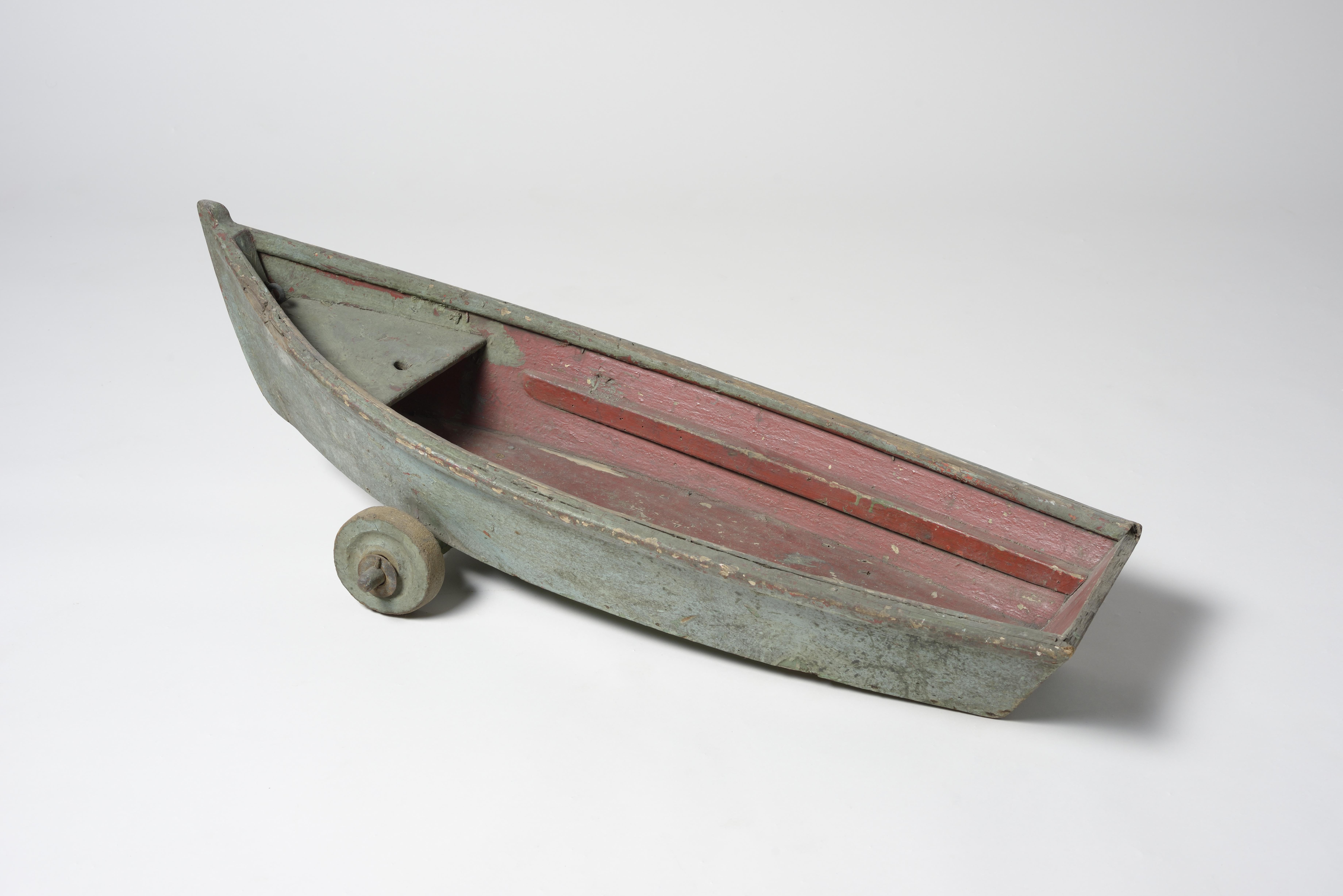 Cette petite barque à roulettes provient de la famille Gaudet-Rondet, constructeurs de bateaux sur l’île de Versailles à Nantes.