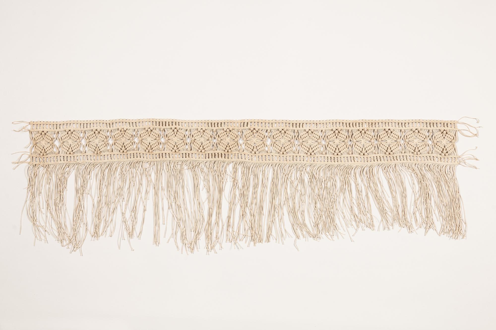 Il s’agit ici d’un exemple de macramé réalisé par des blessés au centre de soin du Lycée de Jeunes Filles, futur Lycée Guist’hau à Nantes, pendant la Première Guerre mondiale.