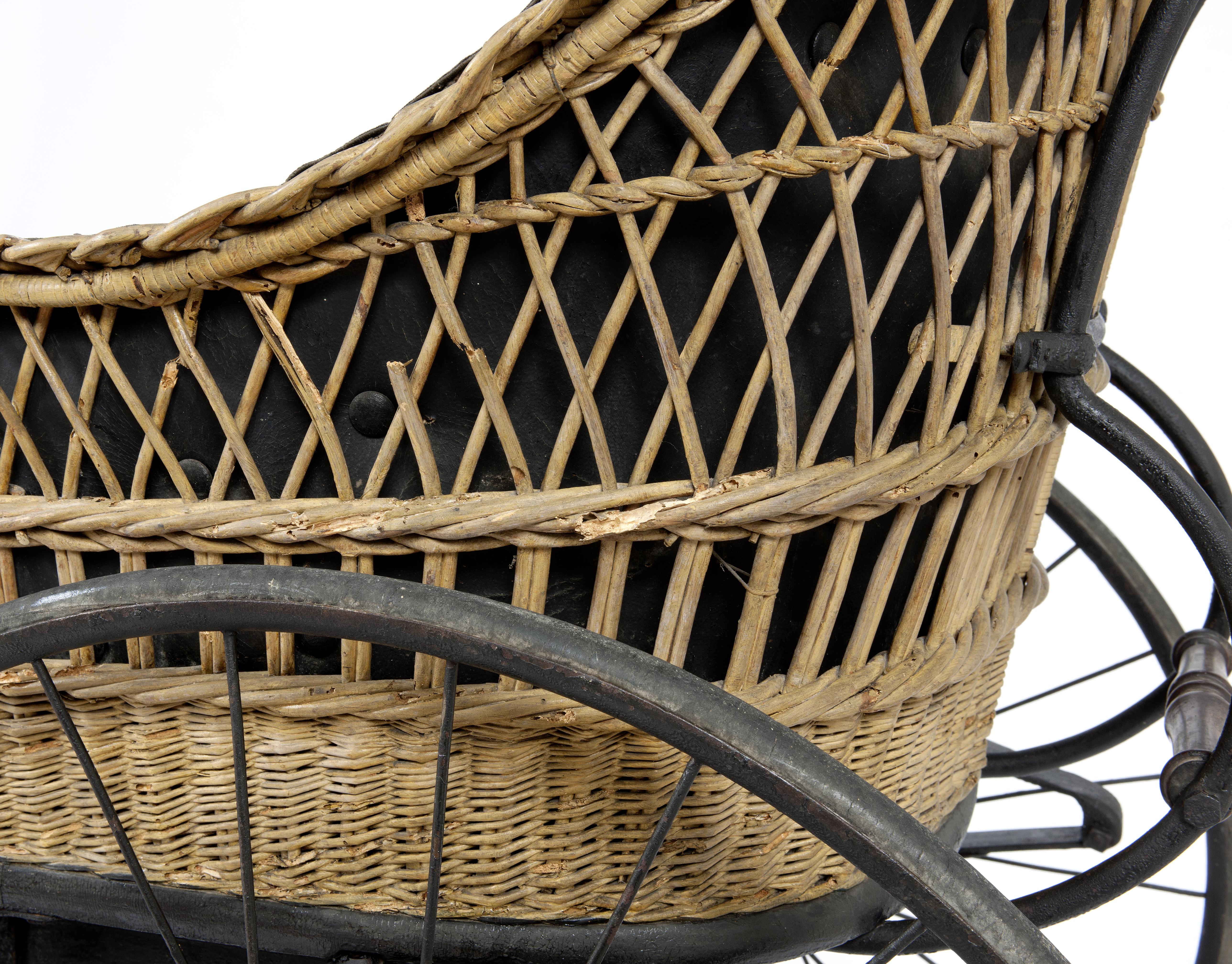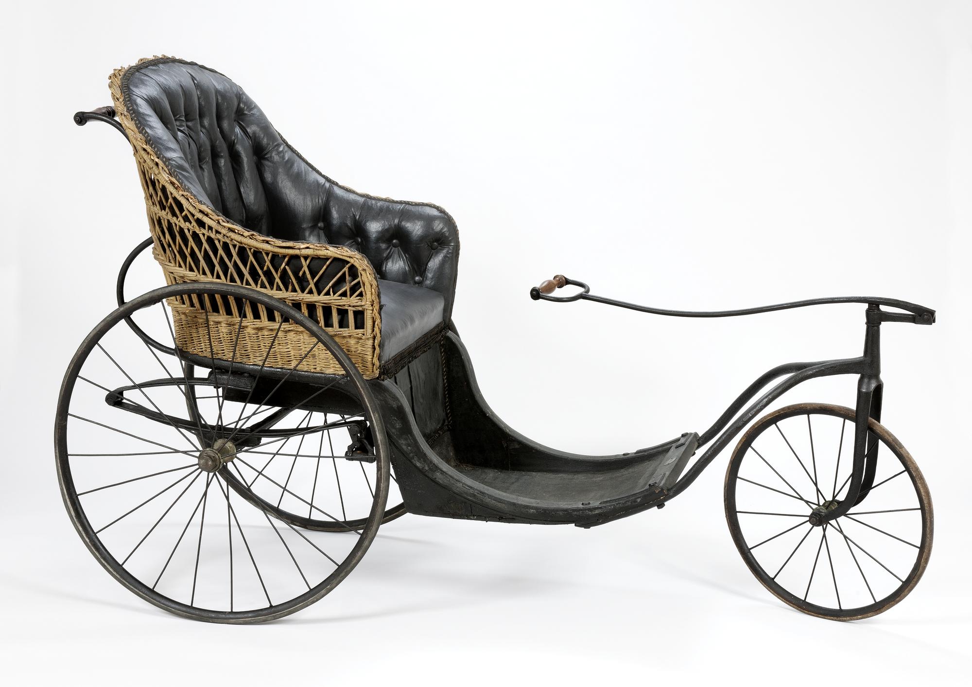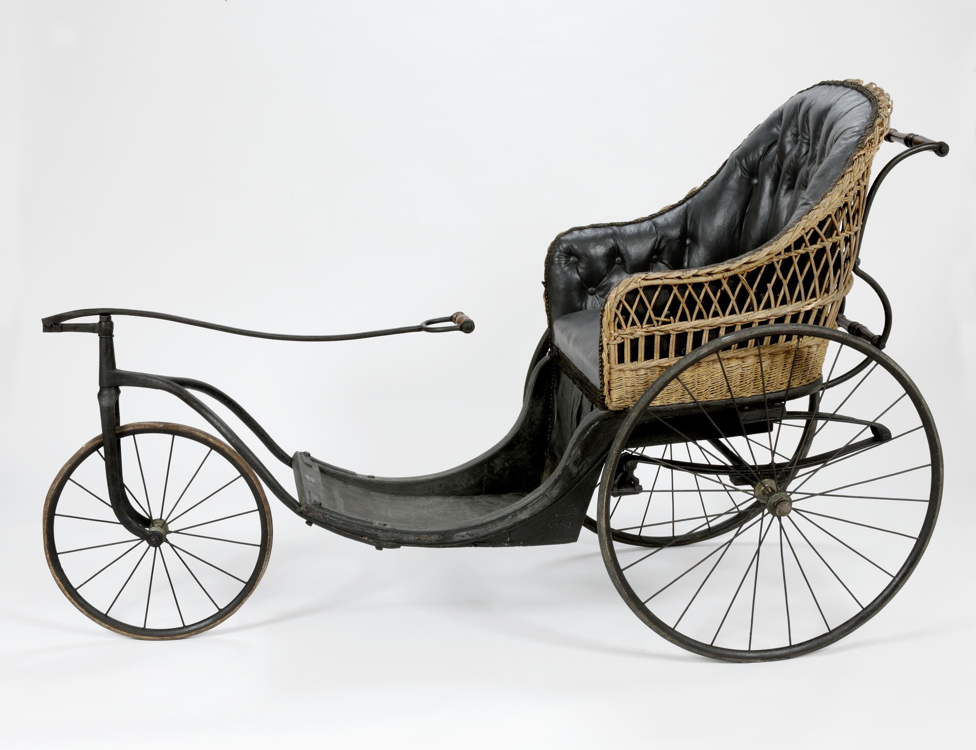 Ce fauteuil sert au transport des soldats blessés lors de la Première Guerre mondiale à Nantes. Conçu sur un modèle ancien, il nécessite encore la présence d’une personne valide pour le pousser. Mais à l’image de la médecine de guerre, le conflit engendre des avancées technologiques majeures en matière de matériel médical. Devant le nombre importants de personnes concernées, les fauteuils acquièrent une plus grande maniabilité, et rendent peu à peu leur autonomie aux blessés grâce à l’autopropulsion. A Nantes, la société Aumont met ainsi au point un modèle actionnable par la force des bras, modèle victorieux lors de la course de mutilés organisée en 1920 à l’hippodrome de Longchamp.