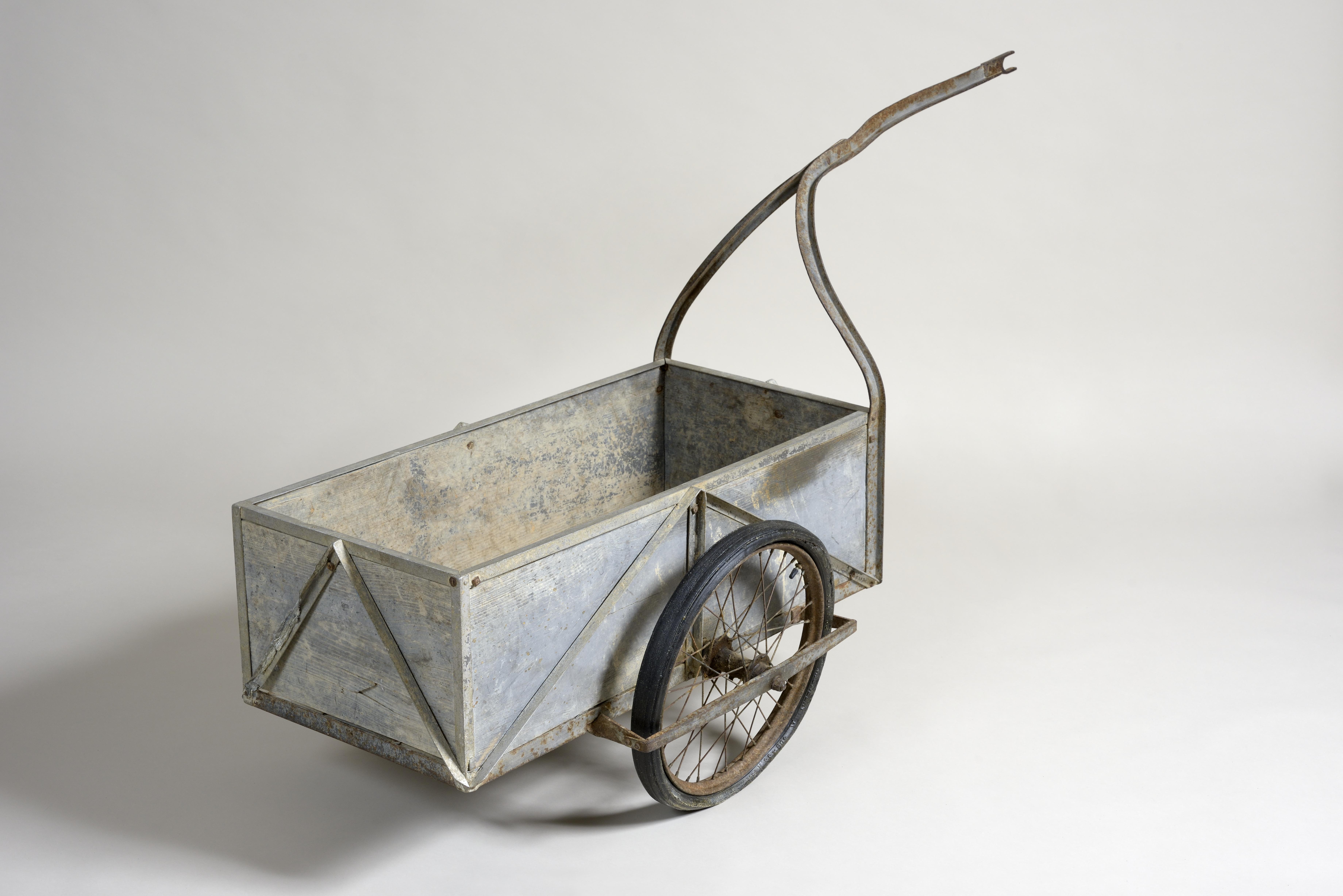 Cette remorque de vélo a servi pendant la Seconde Guerre mondiale à la famille Timonnier, dont les ascendants possèdent une petite exploitation à Châteaubriant et des champs à Nort-sur-Erdre. Afin de se ravitailler en denrées alimentaires, ils s’y rendent en vélo ou en triplette, en prenant soin d’y attacher cette petite remorque. Ce système ingénieux leur permet d’améliorer leur quotidien.