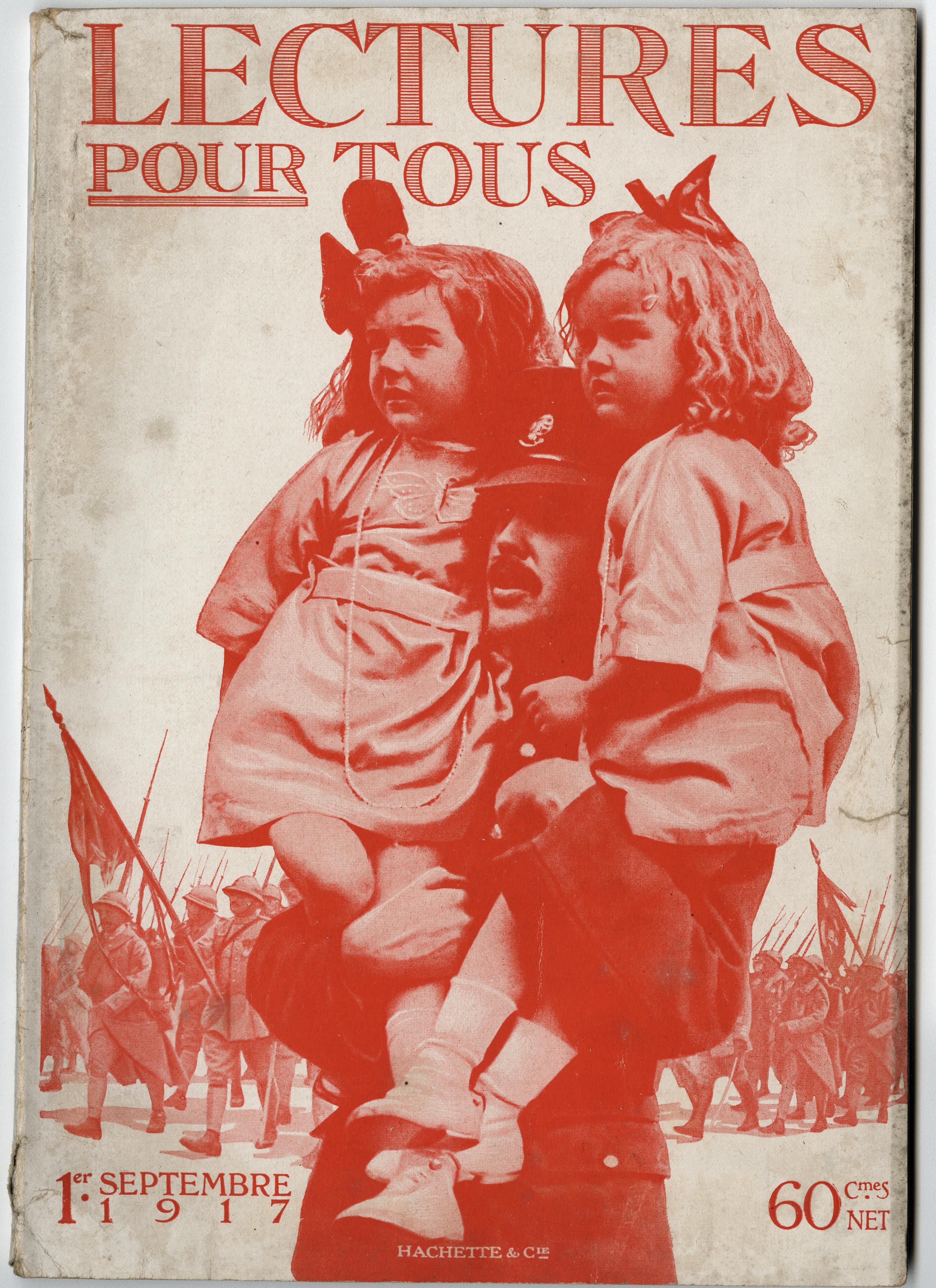 Il s’agit d’un exemplaire de la revue pour enfants « Lectures pour tous », daté du 1er septembre 1917. Cette revue était lue et commentée dans les classes des écoles primaires durant la Première Guerre mondiale, notamment à Nantes, comme l’attestent les rapports de fonctionnement des établissements.