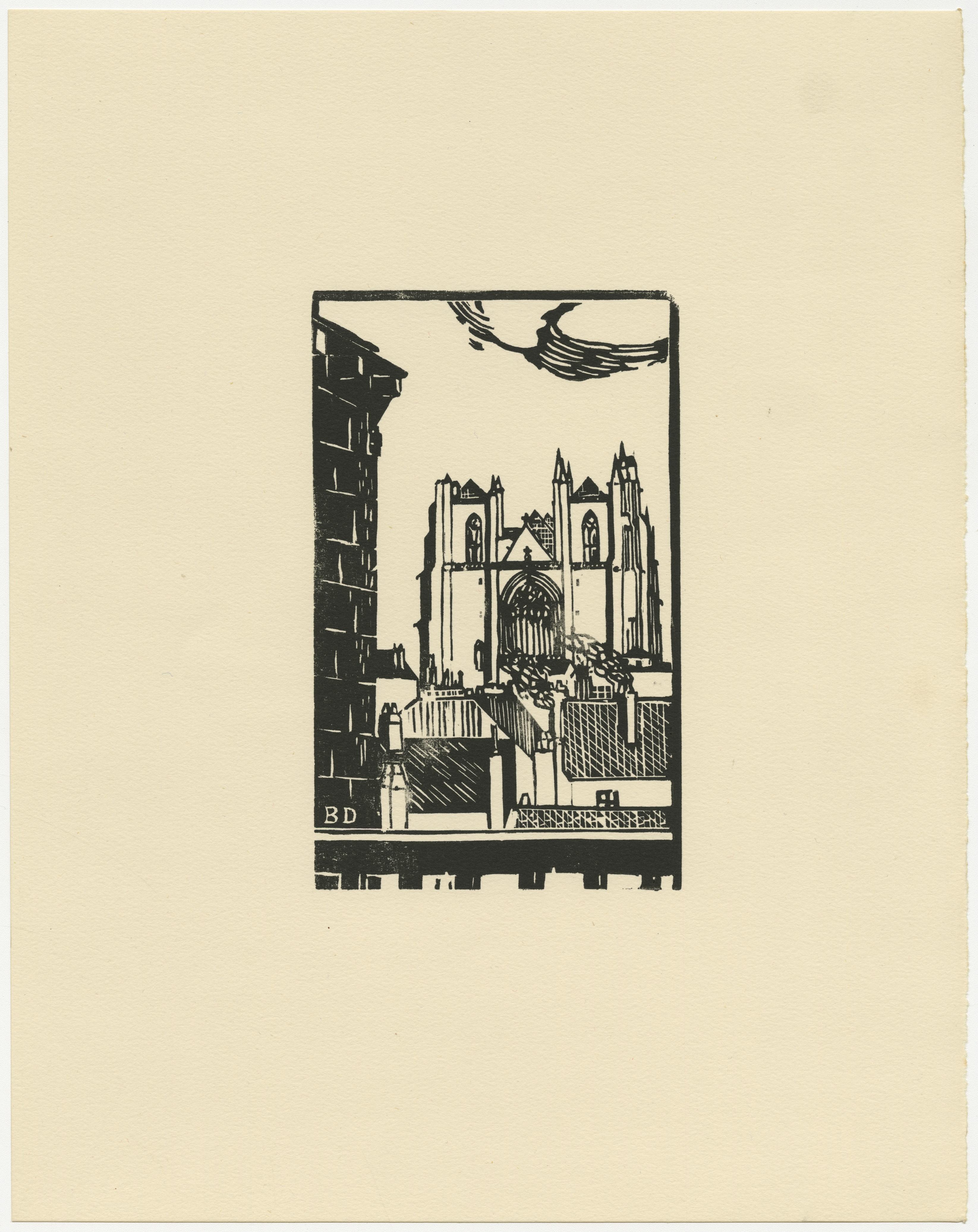 Il s’agit d’un tirage posthume réalisé d’après une matrice en bois gravé de Berthe Dupérier-Dupont et représentant la cathédrale de Nantes. Cette matrice n’est pas datée mais un tirage original conservé en collection particulière est daté de décembre 1931. Ce tirage posthume est produit à l’initiative de la famille de l’artiste, par les Ateliers Rigal en 2016.