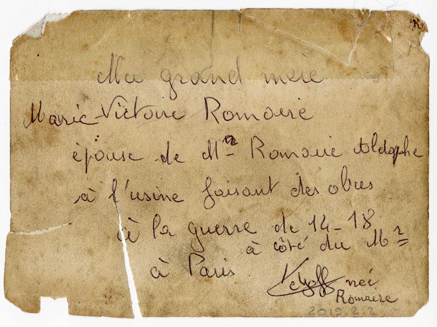 Le cliché a été pris dans une usine d’armement à Paris, où Marie-Victoire Romaire est affectée pendant la Première Guerre mondiale.